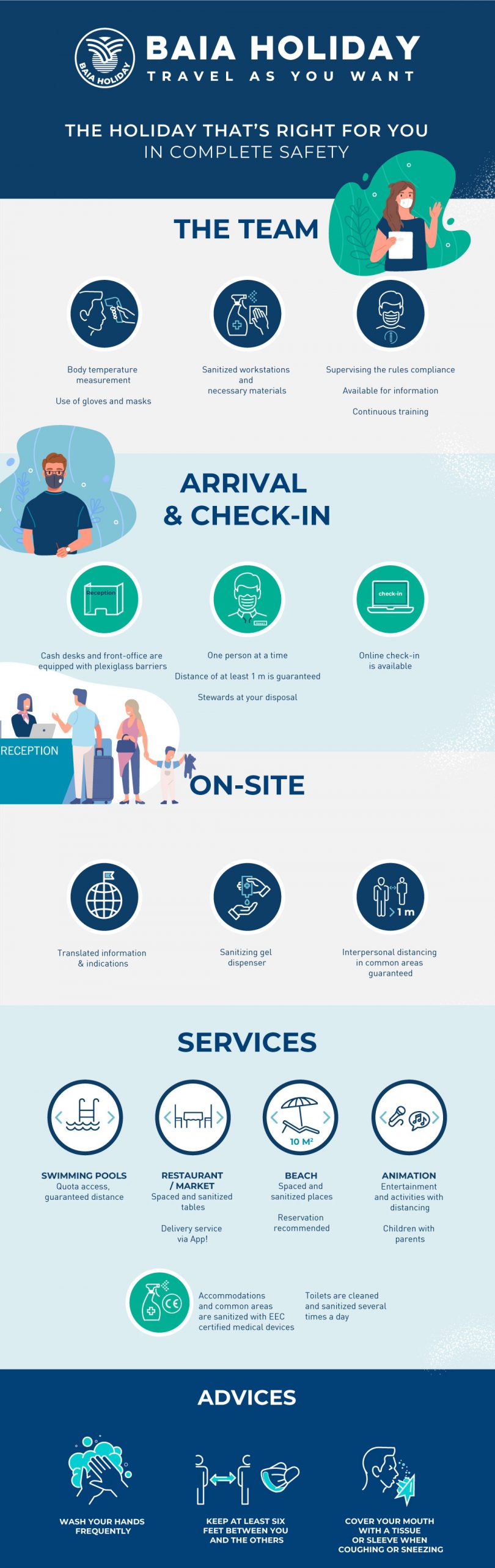 Constantly updated on new health regulations, we have taken every precaution to make safe all the environments, in all our structures.
